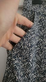 Eleganti pantaloni elasticizzati con una fantasia a zig-zag in bianco e blu.