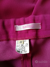 Vendo PANTALONE GAUDÍ in tessuto tipo Cady colore fucsia. Linea ampia ed elegante. Taglia M .MISURE.. LUNG cm 103 fondo cm 54. Semi elastico in vita. PREZZO ?:4 Elegante Giacca copri spalle in leggera seta colore nero, produzione artigianale, manica ampia e lunga, lavorazione particolare alle. spalle sfondo piega posteriore che dona ampiezza ed eleganza Misura cm 75 larg, . 41 spalle, 60 manica. Prezzo 8