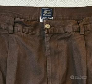 Calzoni estivi Gerani in cotone, colore marrone, con pence e due tasche avanti e retro, taglia 50. Causa portafoglio lieve decolorazione tasca posteriore.