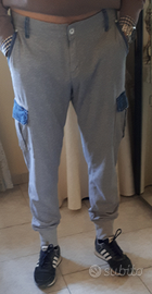 Pantalone ginnico/sportivo con restringimento a "polsino"alle caviglie. Taglia 50 abbondante nel senso che veste largo e comunque regolabile con cintura avendo i passanti classici di un pantalone . Corredato di tasche laterali e posteriori color " jeans ". Tenuto ottimamente vendo per motivi di taglia ad euro 10