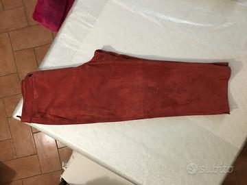Tg 44 colore geranio. In morbida pelle scamosciata. Modello culotte con lunghezza sotto il polpaccio e spacchetto laterale. Tenuti bene e indossati poco. Ritiro o trasporto a carico acquirente.