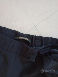 pantalone in tessuto nero taglia S da donna con vita elasticizzata gamba larga marca Try me con fiocco