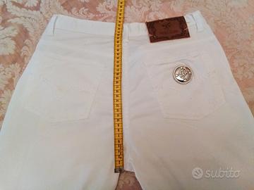 Pantalone jeans Piero Guidi. Colore bianco. Tessuto cotone 97% elastan 3%. Modello 5 tasche. Taglia 32 US americana.