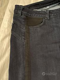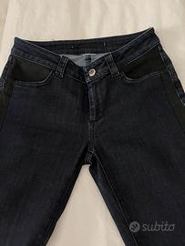 Pantalone jeans SPORTMAX blu con fascia laterale in nero, misura 27. Indossato solo qualche volta, tessuto morbidissimo leggermente elasticizzato. Porta cerniera alla caviglia. Capo indossabile in ogni occasione, da quelle sportive ad altre più impegnative. La fascia laterale in colore nero lo rende adatto anche alla camicia e alla giacca. Il marchio è una garanzia.