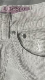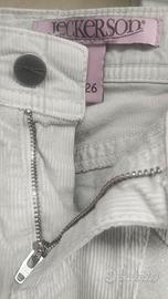 Pantalone Jeckerson colore grigio perla, a costine leggere. Cotone Chiusura bottone con zip Logo Jeckerson ricamato Patches in poliuretano sulle cosce Vestibilità perfetta Tg US 26 - EU 40 Made in Italy