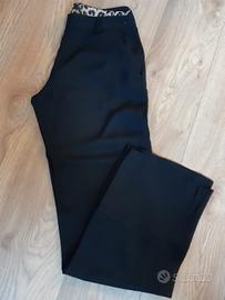 Pantalone in crepe di viscosa ed elastan nero. Vestibilita' morbida e tasche a filo sui fianchi ed allacciatura sul fianco. Interno tasche e punto vita in tessuto maculato.