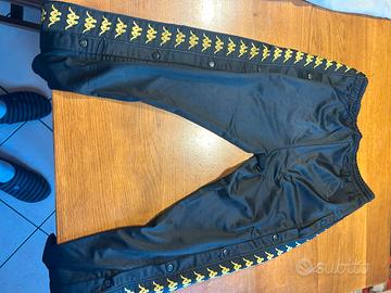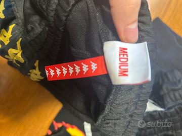 Pantalona nero e oro della tuta di kappa taglia medium presenta dei bottoni sulle parti laterali dei pantaloni usato poche volte e presenta dei piccoli fili tirati sulla parte posteriore come si può vedere in foto