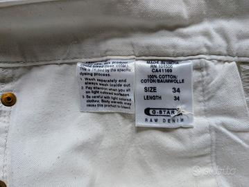 Pantalone leggero colore: bianco ghiaccio (bianco sporco) marca: G-Star Raw taglia: 48 (Italia) materiale: cotone (vestibilità comoda) piccola toppa sul retro vicino alla tasca posteriore