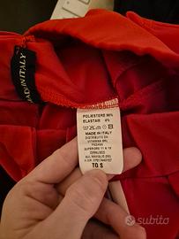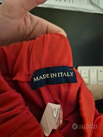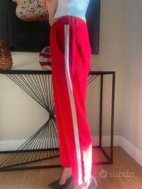 Pantalone lungo rosso, con fasce verticali bianche ai fianchi, con elastico in vita. Taglia S, Made in Italy