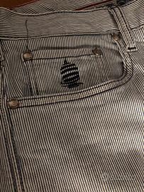 Vendo pantalone uomo, 5 tasche, riga sottile blu, tg.48 italiana. Usato poco, come nuovo!