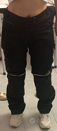 Marca Oxford modello Dakota 2.0 misura inglese 10 pari ad una M o 42. Nella foto indossata da donna altezza 1.60. Pantalone con imbottitura sfoderabile, impermeabile ed è abbastanza pesante. Presente protezioni alle ginocchia liv.1. Cerniere per aggancio a giacca.
