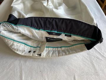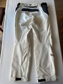 Pantalone bianco e nero per moto, estivo, donna, marca REVIT nuovo mai usato ma NON con la confezione originale, completo delle sue protezioni, taglia 44 Ladies. Lunghezza gamba 110 cm, larghezza cintura 50 cm regolabile con cinturini, larghezza fianchi 58 pertanto è una taglia 44 abbondante