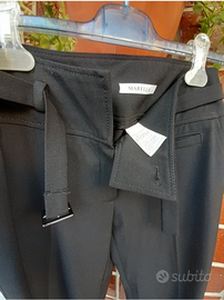 Pari al nuovo, pantalone nero taglia 42, chiusura zip e cinta coordinata, di Marella + top a fiori su sfondo nero taglia 42 di Emme Marella.Top VENDUTO.