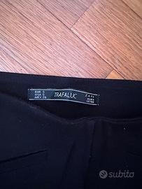 pantalone nero zara, tessuto nero, cerniera laterale, cerniera alla caviglia, taglia S, modello aderente.