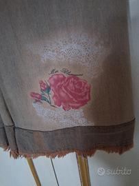 Pantalone jeans Miss Blumarine con tipici disegni di ROSE sul davanti in basso e sul dietro in alto.
