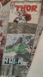 Pantaloni pigiama con stampa fumetti Marvel. - Stampa con personaggi Marvel come Iron Man, Thor, Hulk e Captain America. - Vita elasticizzata con coulisse per una vestibilità comoda. - Polsini alla caviglia. Misure in cm: Larghezza 42; Lunghezza 93; Cavallo 37.