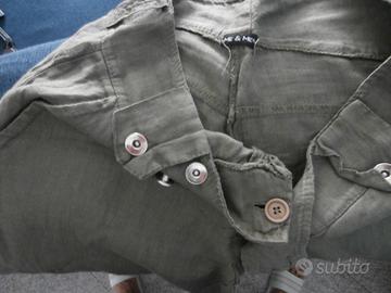 Pantaloncino pinocchietto con più bottoni per chiudere e passanti per cintura in vita.