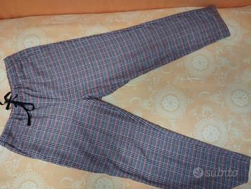 pantalone principe di galles: blue bordeaux marrone beige misto lana modello a carota elastico e laccetto in vita