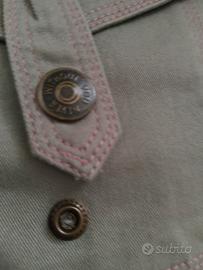 I pantaloni sono del marchio di moda italiano Never Without You (spesso abbreviato in NWY). Stile: Pantalone giovanile, sportivo e alla moda. Taglio: Una vestibilità relativamente dritta Colore: Un colore chiaro e terroso, verde salvia Branding: Il nome "NEVER WITHOUT YOU" è chiaramente visibile sull'etichetta interna in vita sopra la tasca scritta con brillantini Il retro presenta anche tasche a patta stile cargo con dettagli a bottone. Bottoni loggati. Il colore si vede bene nelle prime foto Taglia Xs-S. Se siete interessati vi mando le misure. Mai usato ! Bellissimo! Perfetto!