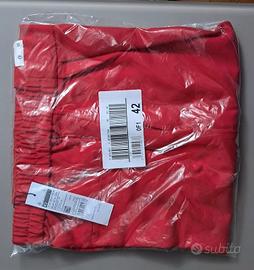 Rosso, con elastico posteriore. Tessuto non elasticizzato. Due tasche laterali a taglio.