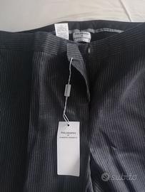 Elegante pantalone italiano sartoriale femminile a righe Philosophy di Alberta Ferretti. Taglia 44, in cotone e seta. Nuovo, mai usato, con etichetta originale. Prezzo originale 260 €.