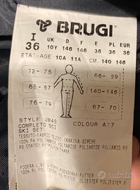 Vendo pantalone sci colore nero, marca BRUGI, con bretelle regolabili. Caldo e ben imbottito. Unisex x ragazzo/a altezza max 152 cm (circa 10/11 anni)