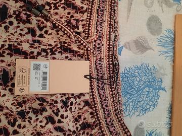 Pantalone estivo motivo floreale marca Scotch & Soda. Nuovo mai usato ancora con cartellino. Misura M. 97% Cotone 3% Poliestere. Misure del capo: Larghezza vita 39 cm - Lunghezza dalla vita al cavallo 34 cm - Lunghezza dal cavallo all'orlo 77 cm - Larghezza orlo in fondo 20 cm - Lunghezza dalla vita all'orlo 107 cm L. E' un pantalone leggerissimo e molto fresco. Va considerato che la gamba del pantalone è molto lunga consiglio l'acquisto ad una persona alta almeno 1,70 mt e/o 1,68 mt io non l'ho mai indossato perché essendo alta 1,55 mt avrei dovuto accorciarlo e non volevo rovinare il pantalone. Nelle prime 4 foto infatti l'orlo è arrotolato tenendo conto della mia altezza.