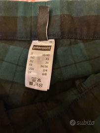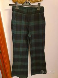 Pantalone in tessuto di cotone leggermente elasticizzato verde bottiglia e blu.