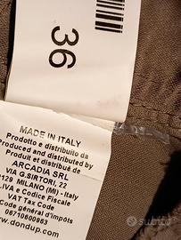 Pantalone da uomo in tessuto di cotone 96% elastan 04% color beige/fango il modello glamour di tendenza slim 4 tasche chiusura a zip taglia 36 (50 Italiana). puo084. Lunghezza 112 cm. giro vita 98 cm. lunghezza del cavallo 25 cm. larghezza dei fianchi 59 cm. lunghezza dell'interno gamba 82 cm. larghezza della caviglia 18 cm. In eccellenti condizioni. Collezione "Gaubert" Made in Italy - Dondup