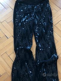 Pantalone con paillettes davanti e dietro velluto liscio nero bellissimo indossato leggerissimo perfetto per le serate tg m nuovo