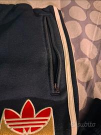 Pantalone della tuta Adidas con un design sportivo e dettagli unici. - Patch Adidas con scritta 1949 sul davanti. - Strisce laterali bianche. - Tasca con zip. - Vita elasticizzata con laccetto. - Misure: Lunghezza 103 cm, Vita 62 cm (elasticizzato)