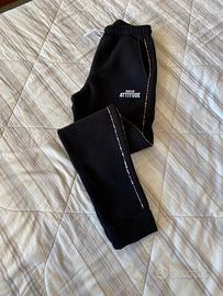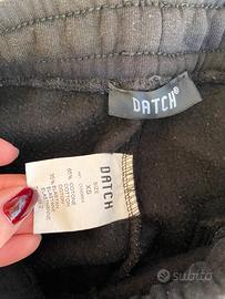 Pantaloni tuta in caldo cotone, marca Datch, tg. xs. Colore nero con bordino laterale animalier. Elastico con cordone in vita regolabile. Polsino alla caviglia. Usato poche volte, condizioni ottime.