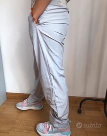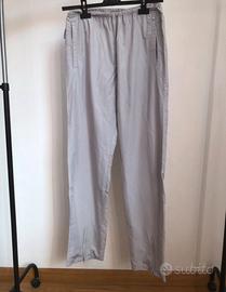 Pantaloni leggeri grigi Nike in tessuto tecnico. Vita elasticizzata con coulisse. Tasche laterali. Zip alle caviglie. È una XS da uomo.