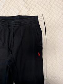 Pantalone Ralph Lauren nero con elegante striscia bianca lungo i lati della gamba. Dettaglio con cerniera regolabile sul fondo del pantalone, perfetta per adattare la vestibilità secondo il proprio stile.