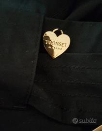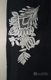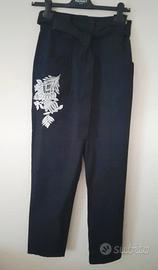 Vendo pantalone twinset nero con ricamo floreale bianco e cintura. Vita alta. 96% cotone. NUOVO ho ancora il cartellino(non attaccato). Taglia 42 ita. Lunghezza da vita ad orlo cm 105, vita alta sopra ombelico cm 36.