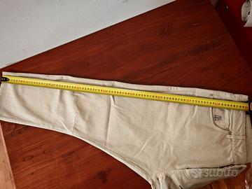 Vendo Pantalone da Uomo Brunello Cucinelli. E' un pantalone in puro 100% cotone, molto comodo con traditional fit. Taglia 50, quindi una M, 86 centimetri alla vita, 36 cm ai piedi, il pantalone è lungo in tutto 91cm. il cavallo è a 31cm. Presenta 2 tasche laterali e 2 dietro. Usato solo un paio di volte, ha un po' di nero tra i passanti della cintura. Il pantalone è stato accorciato di circa 1,5cm con un risvolto cucito professionalmente in fondo alla gamba, che si può rimuovere facilmente. In tutto misura 92,5cm. Lo vendo perchè non mi entra più. Spedisco o scambio a mano in zona Perugia.