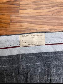 Pantalone da uomo Brunello Cucinelli, modello sartoriale con due pinces, tessuto in flanella 100% lana grigio gessato, taglia 50 #brunellocucinelli #sartoriale #uomo