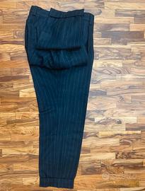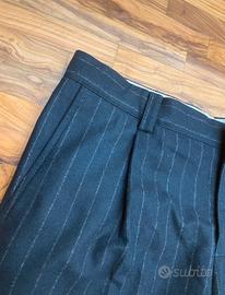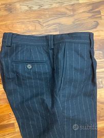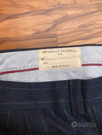 Pantalone da uomo Brunello Cucinelli, modello sartoriale con una pince, tessuto in flanella 100% lana blu notte gessato, taglia 50 #brunellocucinelli #sartoriale #uomo