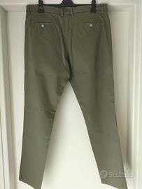 Pantalone uomo cotone verde militare tg. 54, in cotone elasticizzato, tasca alla francese e taschino orologio sul davanti, tasche con doppio filetto sul dietro.