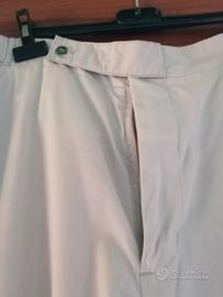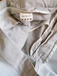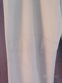 Pantalone uomo in cotone 100 %. Colore ghiaccio con particolari in rosso. Taglia 54 regolabili in vita con il velcro. Tasche posteriori chiuse con cerniera.