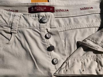 Vendo pantalone da uomo marca Siviglia taglia 31 - IT 46, 97% cotone e 3% elastan. Come nuovo, mai indossato perché troppo stretto per le mie misure (lunghezza originale con orli di fabbrica).