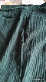 Pantalone gamba ampia e dritta con pinces in velluto a coste piccole colore verde bosco