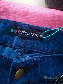 Pantalone in velluto blu nuovo con cartellino, marca Even&Odd