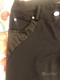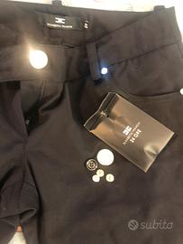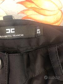 Pantaloni dritti a sigaretta ,5 tasche neri Elisabetta Franchi taglia 42 con bottoni di ricambio. Indossati una volta. Profili in raso nero, cerniera polpacci e targhetta metallo dorato