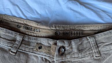 Pantaloni a coste velluto beige taglia 52 "Since 1966". Quattro tasche frontali e due posteriori con chiusura bottone più zip.