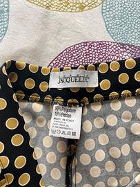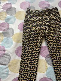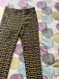 Pantaloni a gamba dritta Sophie Jacqueline Poliestere Taglia L Pantaloni da donna a gamba dritta con vivace fantasia a pois giallo-oro su fondo nero. Realizzati in 90% poliestere e 10% elastan, presentano un tessuto leggero, morbido e dalla caduta fluida. Prodotto Made in Italy, curato nei dettagli e ideale sia per look casual chic sia per outfit più ricercati. Perfetti da abbinare a top o camicie in tinta unita per esaltare la stampa. Brand: Sophie Jacqueline Fantasia: pois giallo-oro su nero Vestibilità: aderente/elastica Composizione: 90% poliestere – 10% elastan Origine: Made in Italy Condizione: nuovo, mai usato Spedizione in un giorno lavorativo