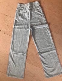 pantaloni a righe mai messi, a gamba dritta, vita alta, colore bianco e azzurrino chiaro