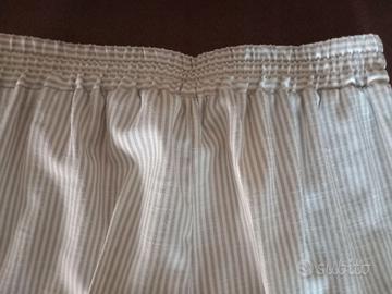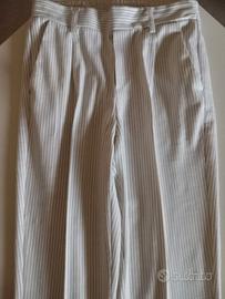 Pantalone a sottili righe color panna su fondo bianco, leggeri e freschi, con risvolto, elastico in vita, taglia XS, marca Stradivarius