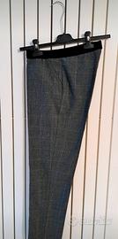 Tessuto liscio e leggermente elasticizzato per questi pantaloni marca Goldenpoint, modello a sigaretta. Il colore è grigio e il disegno a quadri è evidenziato da un sottile filo in lurex. Punto vita elasticizzato per una migliore vestibilità. La lunghezza della gamba dal punto vita è di 91 cm. Sono presenti due tasche. Taglia S