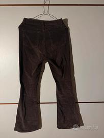 Vendo pantaloni in morbido velluto a coste color cioccolato, modello flare/a zampa. Il capo non riporta l'etichetta della taglia, quindi ho preso le misure precise per assicurarvi la perfetta vestibilità: